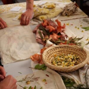 We will be using wild flowers and leaves with dyeing properties and kitchen waste. I love the sustainability that comes with this technique.